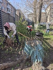 Сотрудники центра очищали территорию от прошлогодней листвы, мусора и веток, приводили в порядок дорожки, а также аккуратно обрезали сухие и поврежденные ветви деревьев и кустарников.