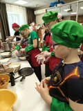 В начале гости рассказали участникам проекта как открывалась их кулинарная мастерская. Под руководством опытных шеф-поваров «ВарюХа» участники проекта и воспитанники филиала освоили искусство выпечки блинов с необычными припеками. Ребята приготовили два варианта начинки: традиционные блины с гречкой и сытные блины с ветчиной и сыром. Особым лакомством стали ажурные леопардовые блинчики с нежным заварным апельсиновым кремом.