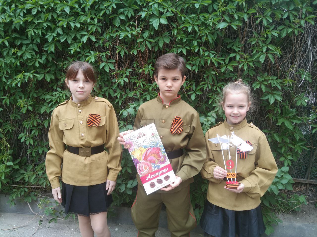 Дети вручили бабушкам поздравительные открытки, конфеты, выразили искренние слова благодарности за их доблестный труд в тяжелые военные годы, пожелали здоровья.