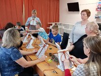 Специалист по социальной реабилитации познакомила детей и родителей с материалами и оборудованием для работы. Участники с интересом погрузились в основы нового для них ремесла: изучили технику плетения и научились закреплять основные узлы.