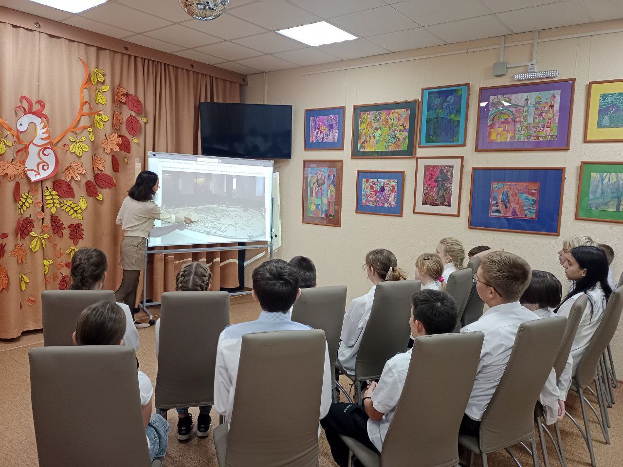 Ребята смогли ознакомиться с крупнейшей экспозицией проекта "Я приведу к тебе музей!", которая раскрывает ключевые аспекты российской государственности, территориального, политического и культурного единства. Экспозиция "От Руси к России" детально освещает процесс становления русских городов на протяжении периода от раннего Средневековья до начала двадцатого века.