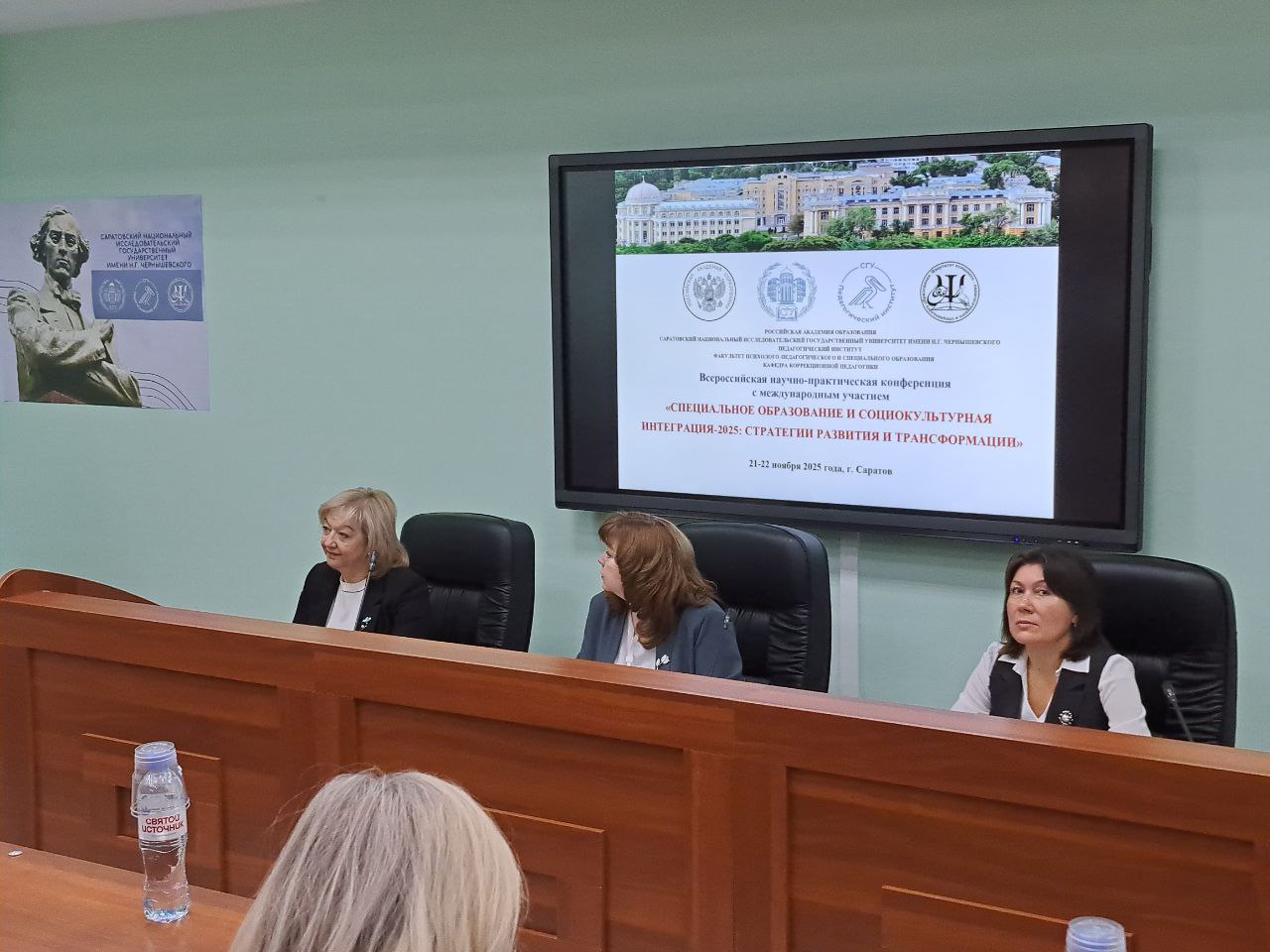 21 ноября сотрудники ГАУ СО СРЦ "Возвращение" приняли участие во Всероссийской научно-практической конференции с международным участием "Социокультурная интеграция и специальное образование – 2025: стратегии развития и трансформации". Мероприятие проходило на базе факультета психолого-педагогического и специального образования Педагогического института Саратовского государственного университета им. Н.Г. Чернышевского.