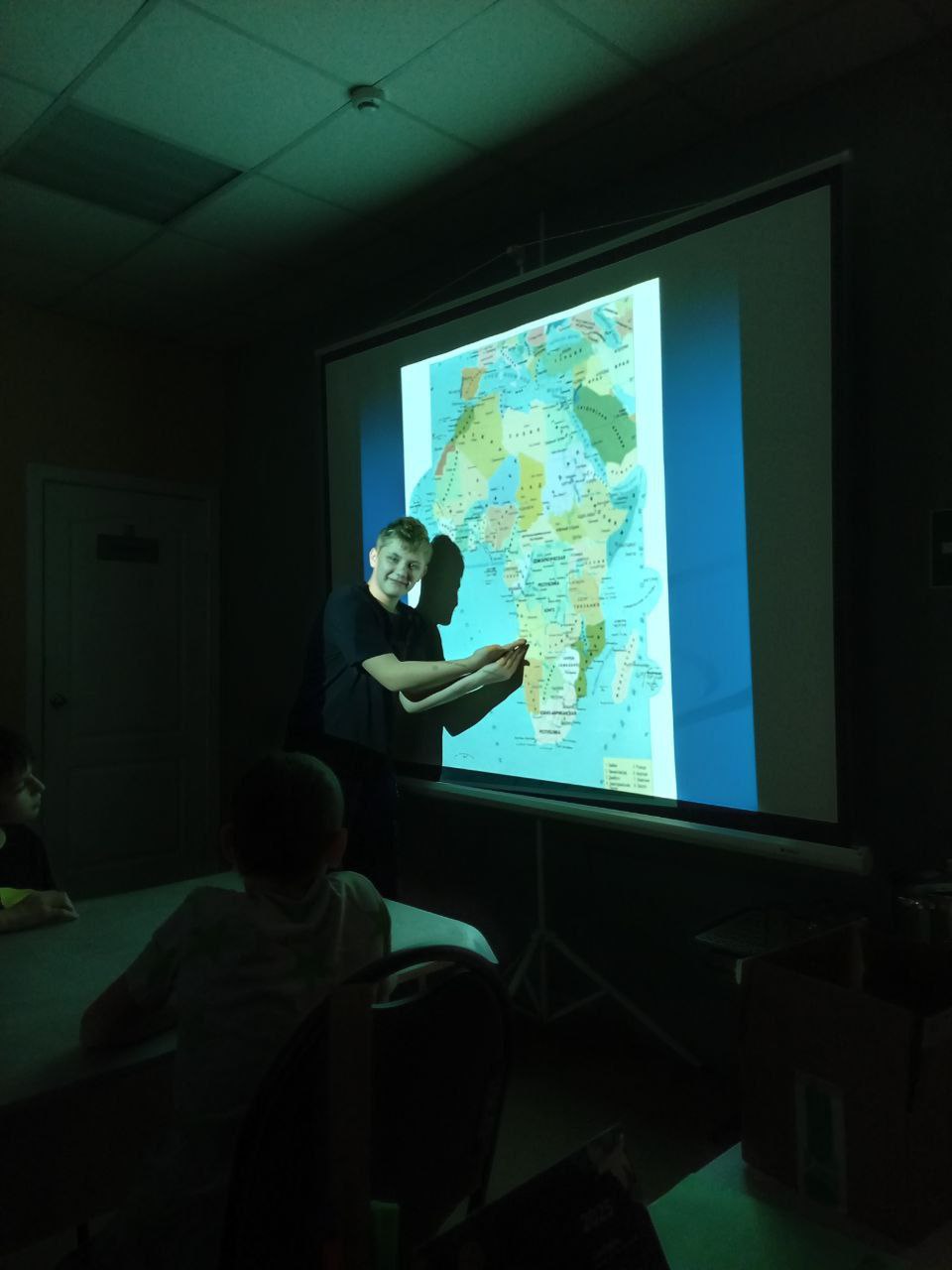 Первая часть встречи перенесла юных исследователей на самый жаркий континент планеты. Дети с восторгом открывали для себя уникальную природу Африки, ее величественные ландшафты, удивительное разнообразие народов и колоритные страны, а также знакомились с захватывающими историческими фактами. Две команды с азартом состязались, демонстрируя эрудицию и командный дух в ответах на вопросы ведущих.