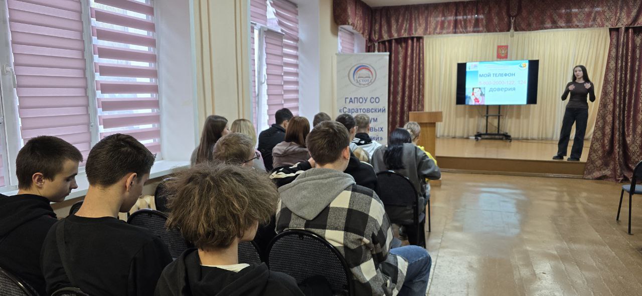 С начала 2025 учебного года психологи провели серию встреч с учащимися школ и лицеев, а также со спортсменами. Мероприятия прошли в ГАОУ СО «Школа «Уникум», МОУ «Лицей № 107», ГАПОУ СО «Саратовский техникум отраслевых технологий» и ГБУ ДО СО «Спортивная школа олимпийского резерва «Надежда губернии».