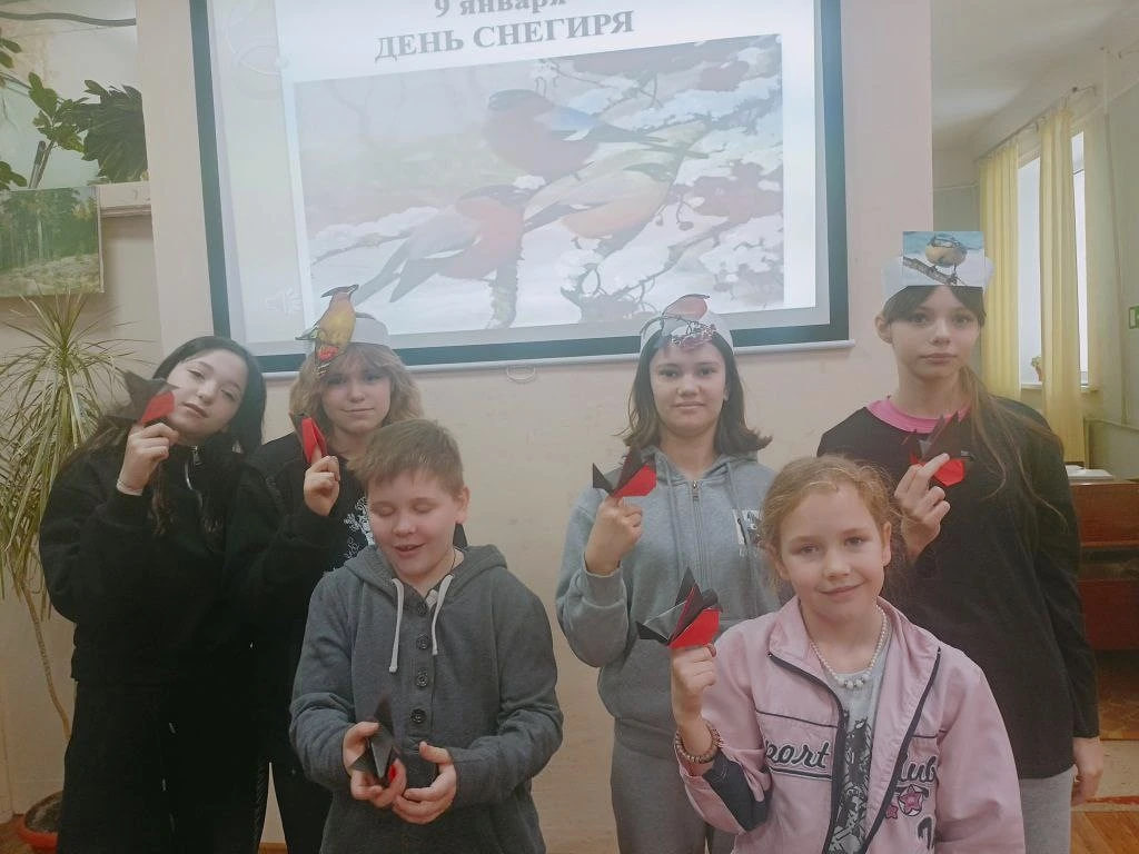 Участники встречи узнали о характерных особенностях внешнего вида снегирей, где они живут и чем питаются. Посмотрели познавательный фильм «Куда снегири улетают на лето», а затем смастерили очаровательных снегирей в технике оригами. Ребята активно обсуждали, как важно помогать зимующим в наших краях птицам, чтобы им проще было пережить морозы. В завершение мероприятия посмотрели мультфильм «Снегирь», снятый по одноимённому стихотворению Агнии Барто.