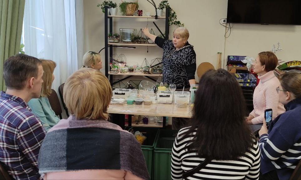 Гости окунулись в мир миниатюрных экосистем, где темой мастер-класса стало создание "Живого островка". Специалисты центра "Возвращение" и участники проекта с удовольствием поделились своими секретами и тонкостями этого увлекательного процесса. От выбора растений до создания гармоничной композиции – каждый этап был наполнен заботой и вниманием.