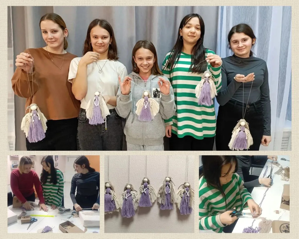 Объемные фигуры и символичные подарки. Следующим этапом стало создание подвесов «Ангел». Здесь ребята учились работать с объемом, создавая фигурки из нитей. Под руководством специалиста участники сплели прекрасные подвесы, которые стали не просто тренировкой, а готовыми декоративными изделиями.