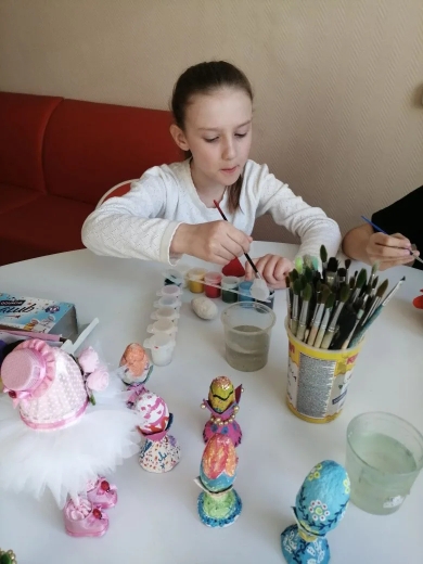 Каждое яйцо стало уникальным, ребята вкладывали в работу не только фантазию, но и частичку души. Готовые изделия украсят праздничный стол центра и станут подарками для близких.