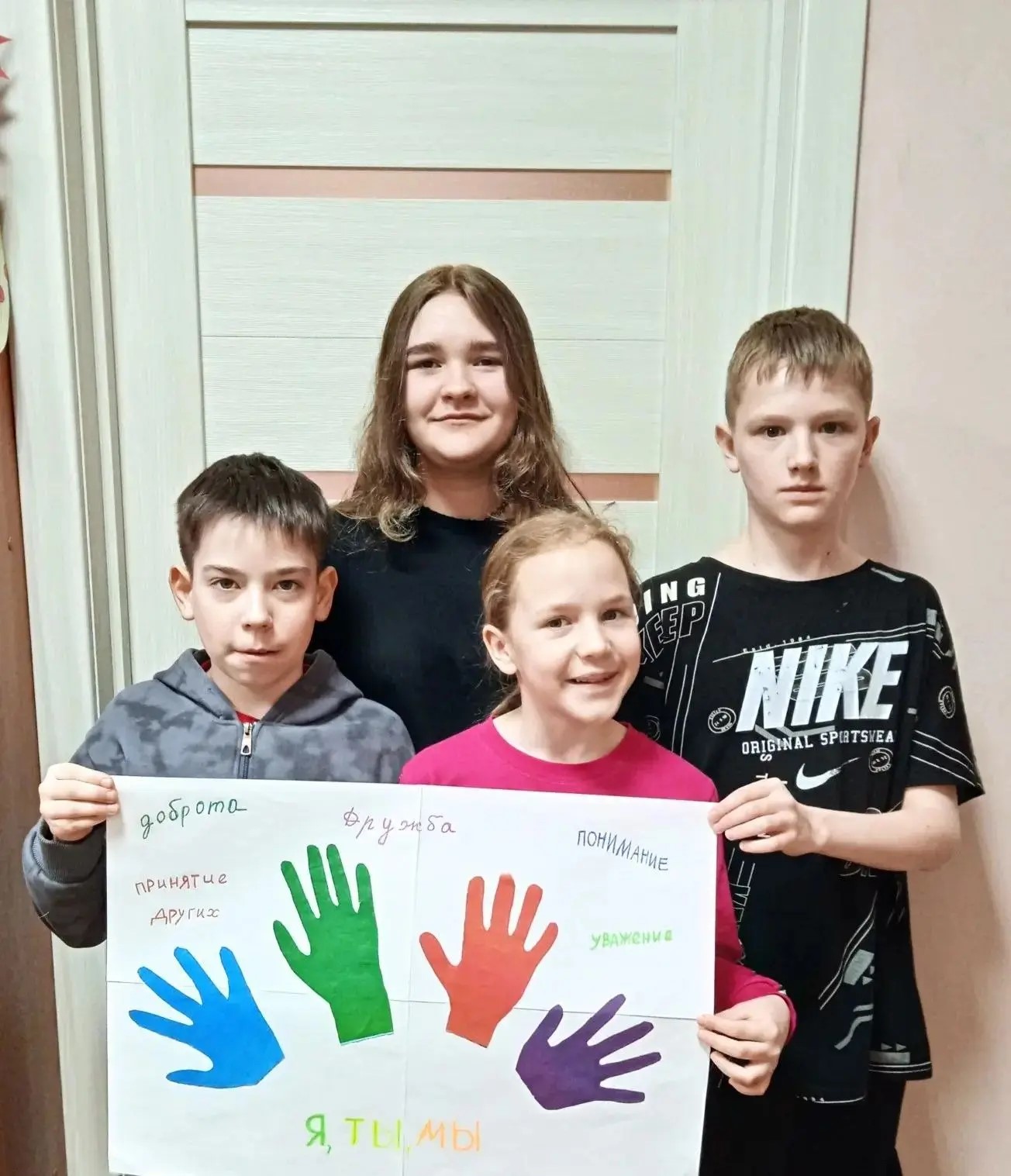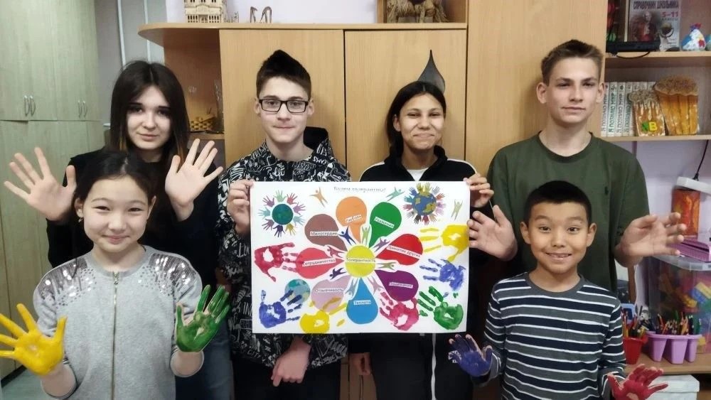 Урок толерантности под названием «О людях: других и разных». Ребята получили четкое представление о том, что такое толерантность, и научились уважительно относиться к представителям различных национальностей. В ходе открытой беседы дети делились информацией о себе, создавая атмосферу доброжелательности и взаимного доверия. Особое внимание было уделено отработке навыков бесконфликтного взаимодействия и уважительного отношения к чужой точке зрения. Завершилось занятие творческим процессом – созданием коллективного тематического плаката. Программа также была ориентирована на развитие положительных личностных качеств и культуры поведения.